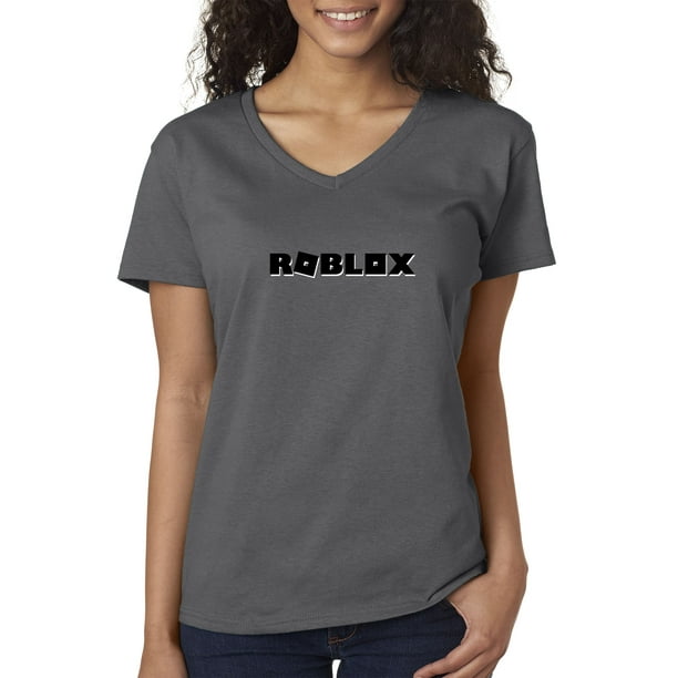 New Way New Way 1168 Women S V Neck T Shirt Roblox Block Logo Game Accent Large Charcoal Walmart Com Walmart Com walmart